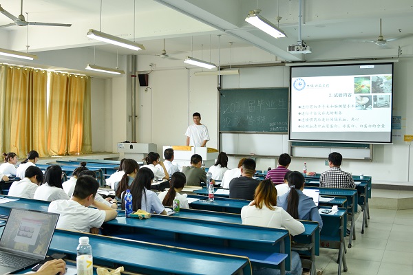 本次论文答辩分为两个部分:第一部分学生PPT汇报,主要包括论文的目的、方法、结果、结论等,时长为5分钟。第二部分评委老师根据论文内容进行提问和交流,时长为10分钟左右。答辩进行过程中,毕业生准备充分,思路清晰,态度认真,能够积极回答评委老师提出的问题。现场气氛紧张有序,师生交流充分,考查了学生综合运用专业知识和科学研究基本能力。