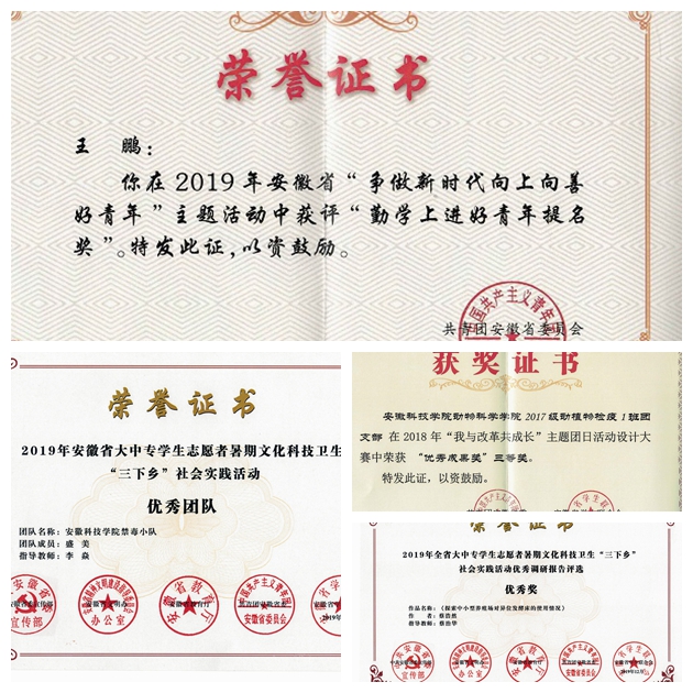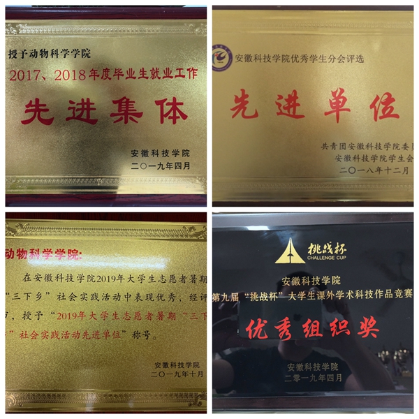 文化育人成效好。坚持先进文化引领,团学活动品牌多,文化育人效果好。学生代表队多次在全国“牛羊精英赛”、“雄鹰杯”小动物医师技能大赛、动物科学专业技能大赛夺得佳绩。特色品牌“牧医文化节”扎实推进。志愿服务和社会实践活动有序推进,连续多年获“三下乡”社会实践活动先进单位。学生代表队连续6年获校田径运动会团体总分第一名。学生会多次获评校优秀分会“先进单位”。学院学生荣获“安徽省好学向上好青年”荣誉称号、省“我与改革共成长”团日活动设计、高校“反电诈”校园情景剧比赛,“三创”安徽赛区挑战赛、省大学生生物标本制作大赛、中国(安徽)大学生茶文化创新大赛决赛等奖项多项。