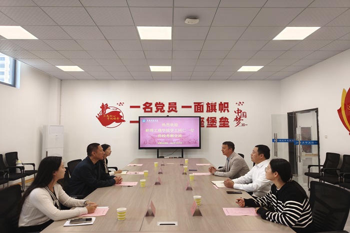 王东辉对学校的接待和分享表示感谢,介绍了蚌埠工商学院一站式学生社区建设基本情况。并就加强两校学生社区建设工作的互动交流提出了建议。