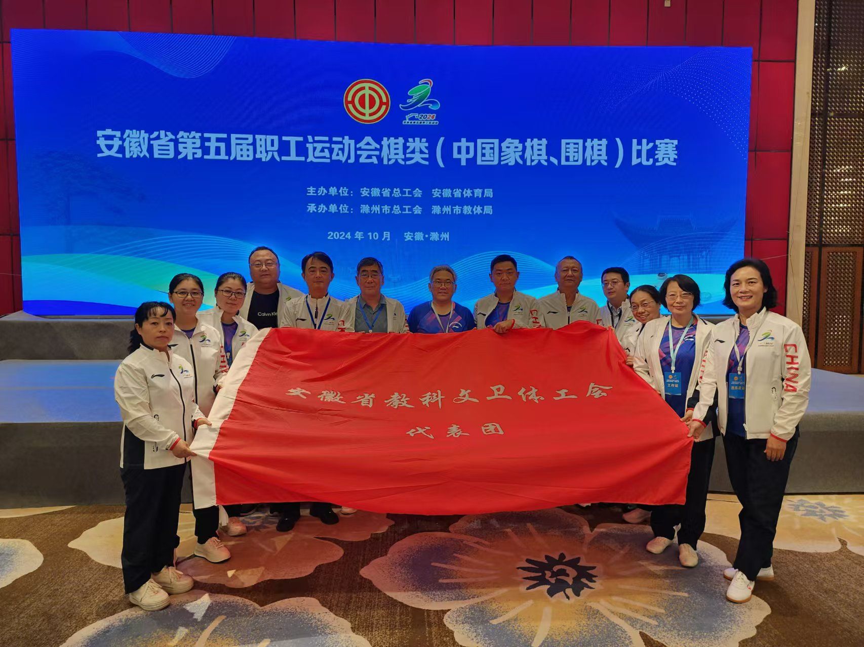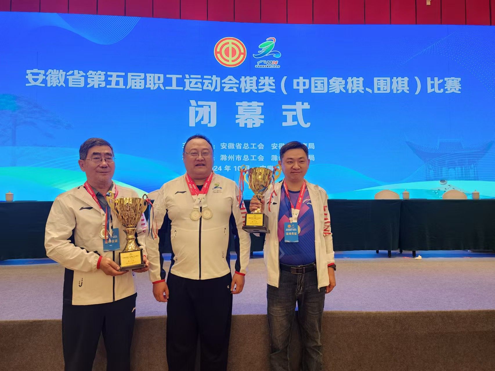 10月16日,安徽省第五届职工运动会棋类比赛在滁州拉开帷幕。安徽省体育局和滁州市领导等领导出席开幕式。经选拔推荐,我校信息与网络工程学院赵靖老师和滁州学院王精明老师、安徽大学李志强老师,联合组成省科教文卫体工会系统代表队参加省第五届职工运动会棋类比赛,代表队在比赛中团结协作、沉着应战,通过两天7轮的激烈比赛,再次获得了中国象棋男子组团体二等奖(银牌),为我校争取了荣誉。