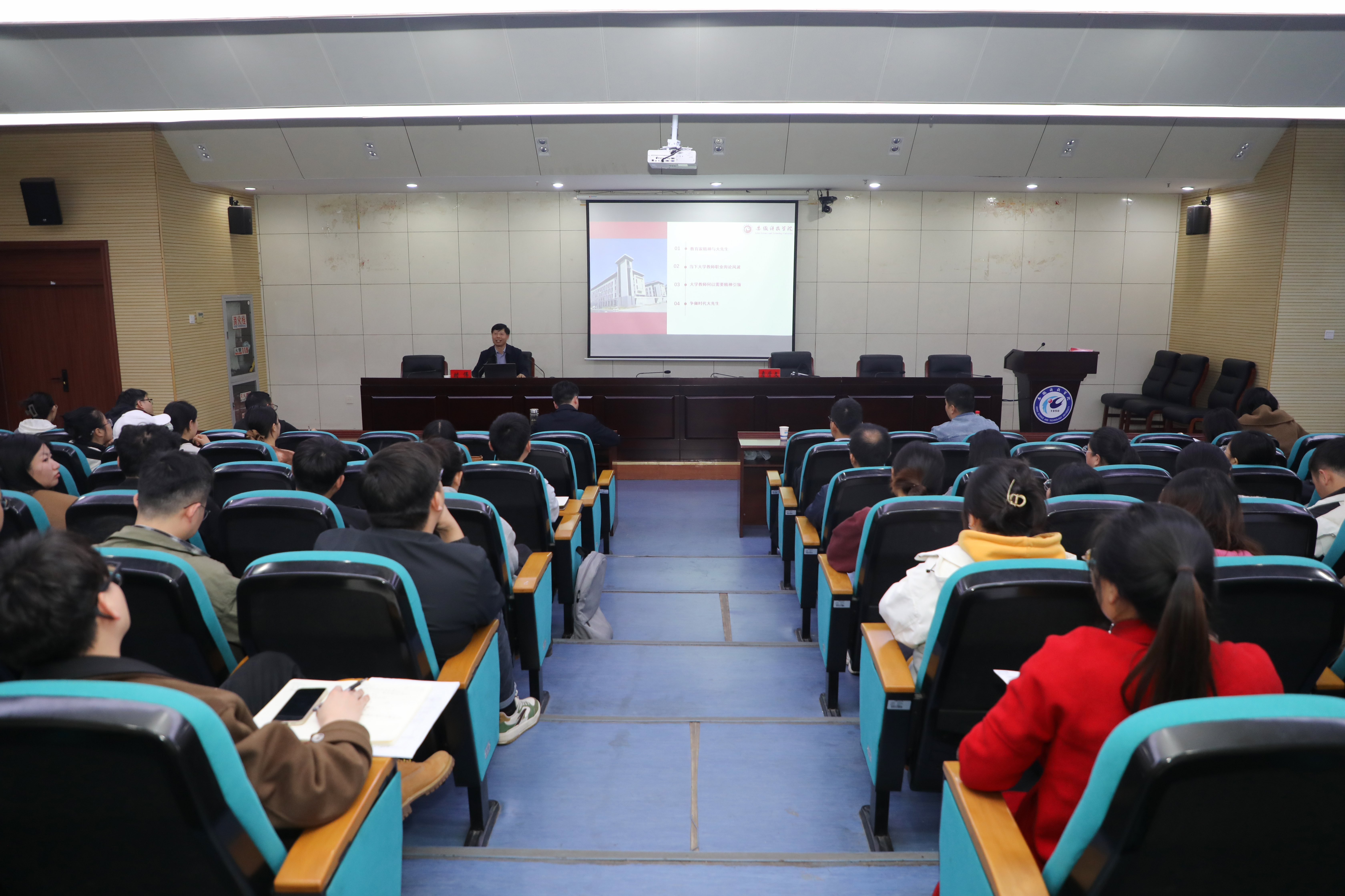 辅导报告紧紧围绕“承续教育家精神,面向大先生前行”主题,从教育家精神与大先生、当下大学教师职业舆论风波、大学教师何以需要精神引领、争做时代大先生等四个方面作了详细解读。