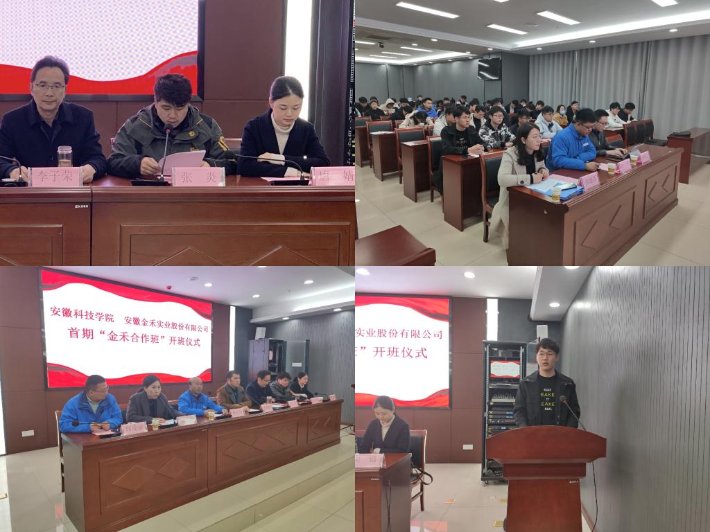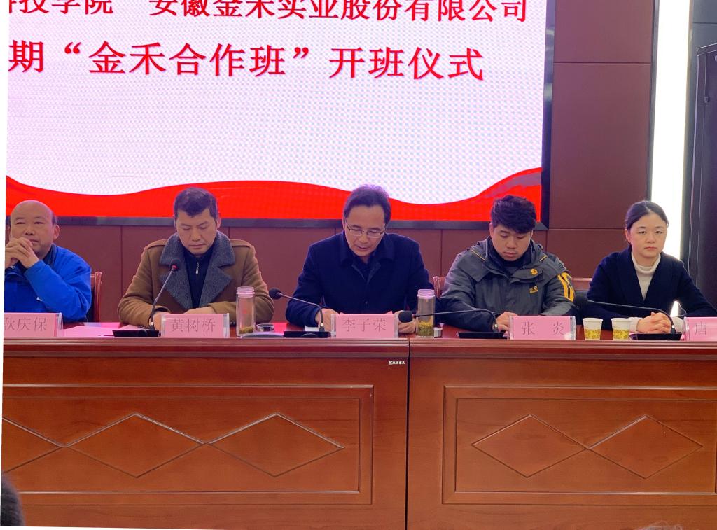 李子荣介绍了“金禾合作班”的育人目标、教学内容安排、管理架构,并就下一步推动双方成立产业学院提出了设想和建议。张炎宣读了《关于成立云鼎官方在线入口 安徽金禾实业股份有限公司首期“金禾合作班”的通知》文件,金禾班企方兼职班主任燕岩、院方兼职班主任薛璐莎和学生代表顾涛依次发言。