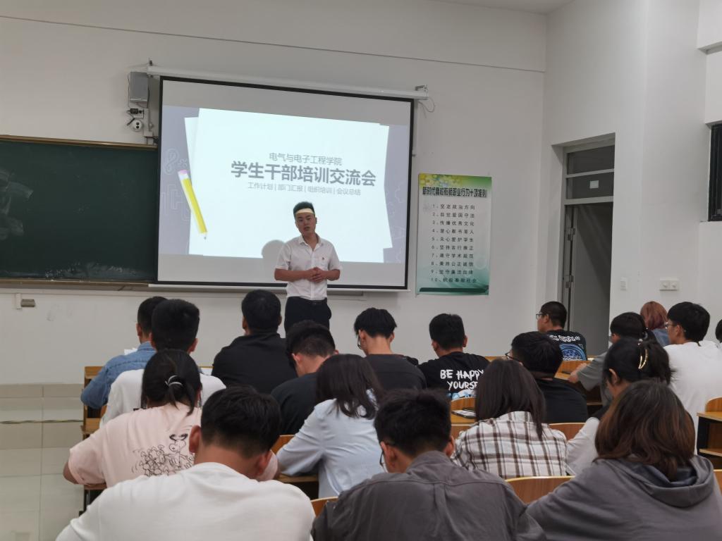 为不断加强学生组织建设,提升学生组织成员素质,增强学生组织成员荣誉感,确保更好的开展学生工作,9月5日下午,电气与电子工程学院于致知楼B105教室举办学生组织见面会暨学期初学生干部培训会。学院党委副书记尚磊、学生会指导教师于宏亮出席了本次会议,各学生组织负责人及2019、2020级各班团支书参加,会议由于宏亮主持。