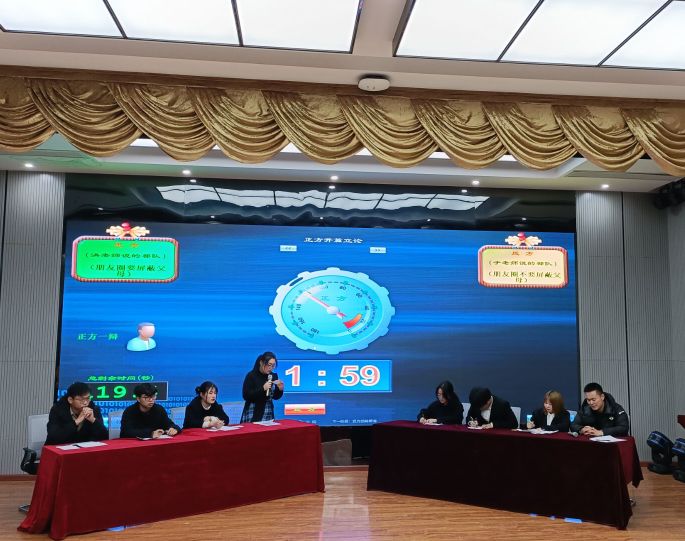 决赛结束,洪乃羽、于宏亮分别与学生组队,针对“朋友圈要不要屏蔽父母”展开讨论。双方队伍就父母是不是朋友、如何与父母进行有效沟通、朋友圈会不会拉大或者消除隔阂等问题展开讨论。于宏亮、洪乃羽在总结陈词中,分别就己方辩题,说明不屏蔽和屏蔽父母的意义所在,号召各位同学经常性与家长、老师开展沟通交流。