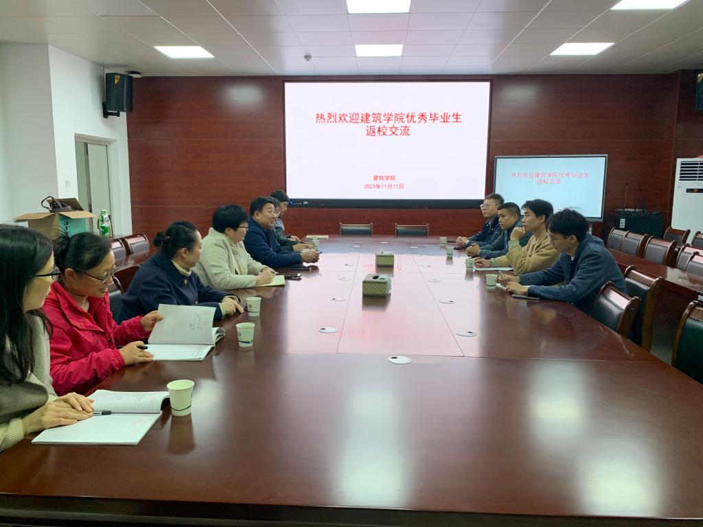 11月11日下午,建筑学院邀请李兵、刘文博、单新海和黄启四位优秀毕业生,在尚行楼A301会议室召开优秀毕业生返校交流会,学院党政领导、教研室主任和相关教师参加了会议。会议由建筑学院院长张远兵主持。