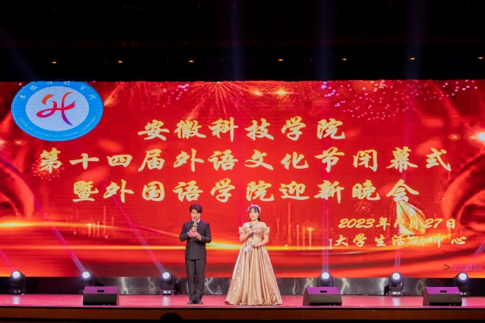 闭幕式晚会上,主持人回顾了校十四届外语文化节自五月开幕以来,以“语言的盛会,文化的传承”为主题,坚持以学生为中心,以提升学生能力为目标,坚持守正创新,不断推陈出新,举办了五大模块共计二十余项活动,成为我校开展大学生思想政治教育的第二课堂和文化育人的重要载体,成为兼具影响力和知名度的校园文化品牌活动,极大激发了全校英语学习者和爱好者参加外语文化节各项活动的积极性。