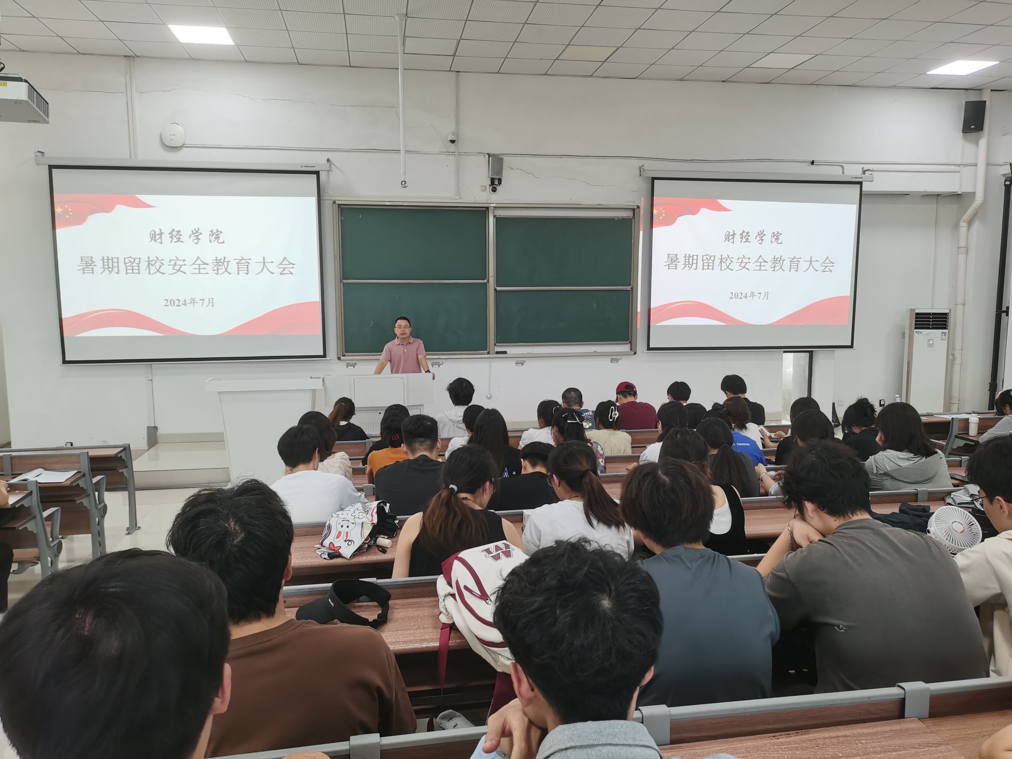 为加强暑期留校学生的安全管理,提高同学们的安全防范意识,确保留宿学生渡过一个平安、充实的假期,7月5日,财经学院在致知楼A111召开大学生暑期留校安全教育大会。学院党委副书记、纪委书记耿广汉出席并讲话,25届毕业班辅导员和留宿学生参加会议。