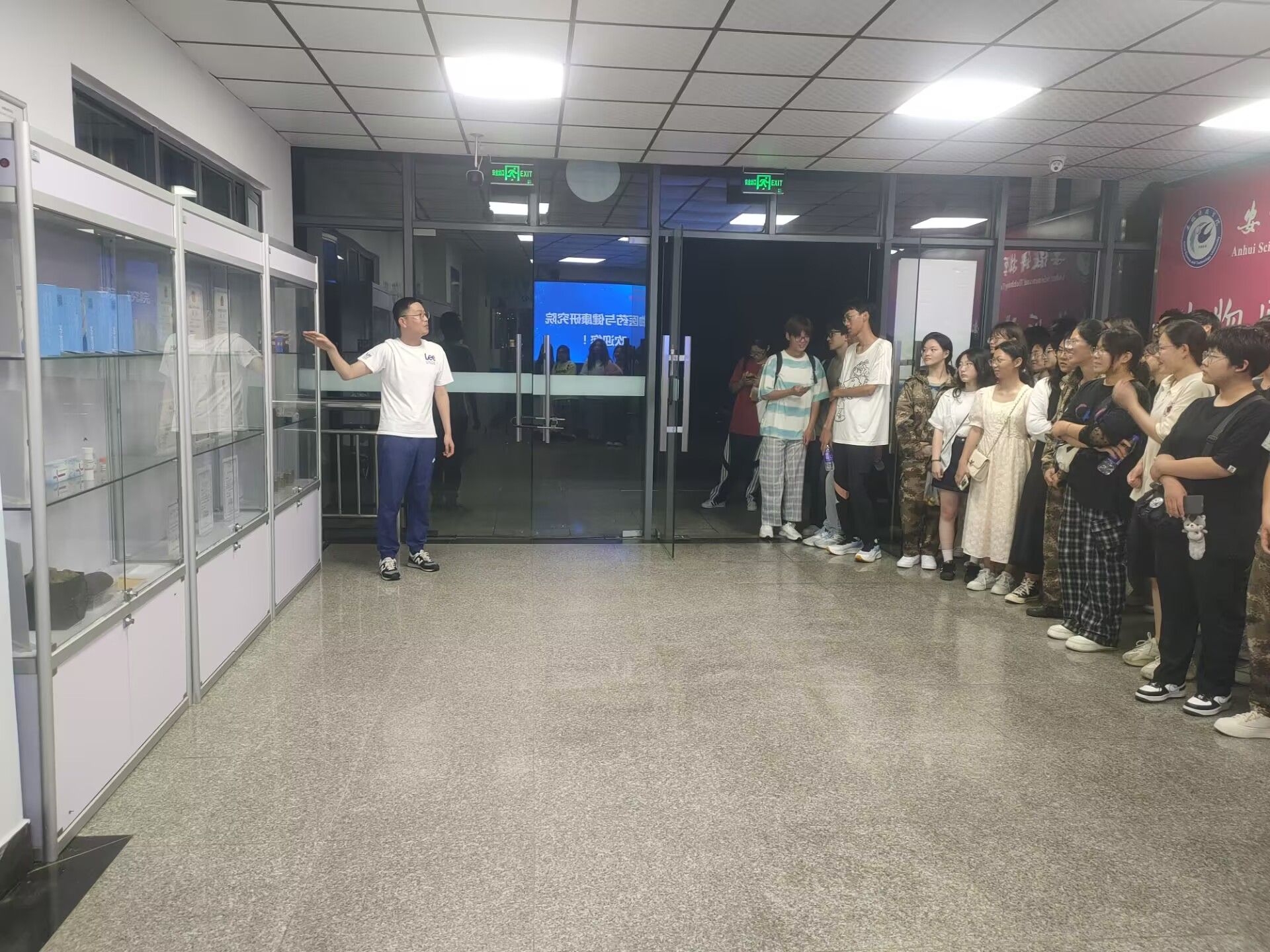 学院2024级新生按照专业分批跟随邱万伟、江琦老师参观生物医药与健康研究院。两位老师向新生介绍了研究院的由来和研究院各层主要功能,并详细介绍了展柜中的各类生物产品,如新冠病毒检测试纸、铁皮石斛、香皂、口红等。向同学们介绍了原子吸收光谱仪、高分辨透射电子显微镜等大型仪器,并参观了扫描电子显微镜室。在生物传感实验室为新生演示新冠病毒检测试纸,介绍了该实验室的主要功能。在色谱实验室和光谱实验室,详细地为新生介绍实验室中的各类器材。参观期间,新生们积极地提出自己的疑问,两位老师耐心地为新生答疑解惑。