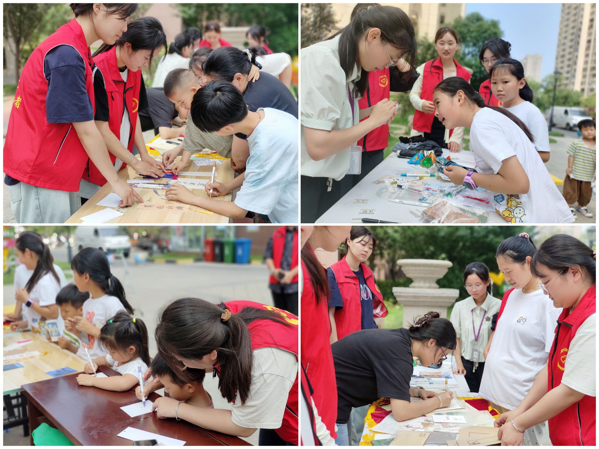 不同于家书撰写活动的沉静专注,“萌宝巧手做书签,家训美德心中嵌”家训书签DIY活动则是一片洋溢着活力与创意的景象。实践团成员与小朋友们亲切互动,一同在空白的书签上尽情发挥自己的想象力。在志愿者的鼓励和陪伴下,小朋友们雀跃地分享着自己的创意。
