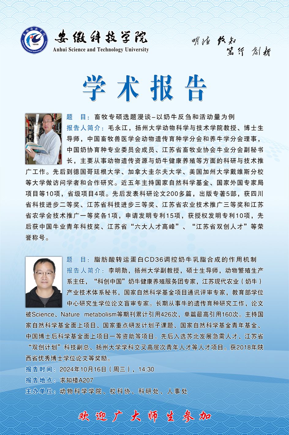 【日期:2024年10月15日】 【单位:科研处 校科协 动物科学学院】 【作者:钱晶晶】