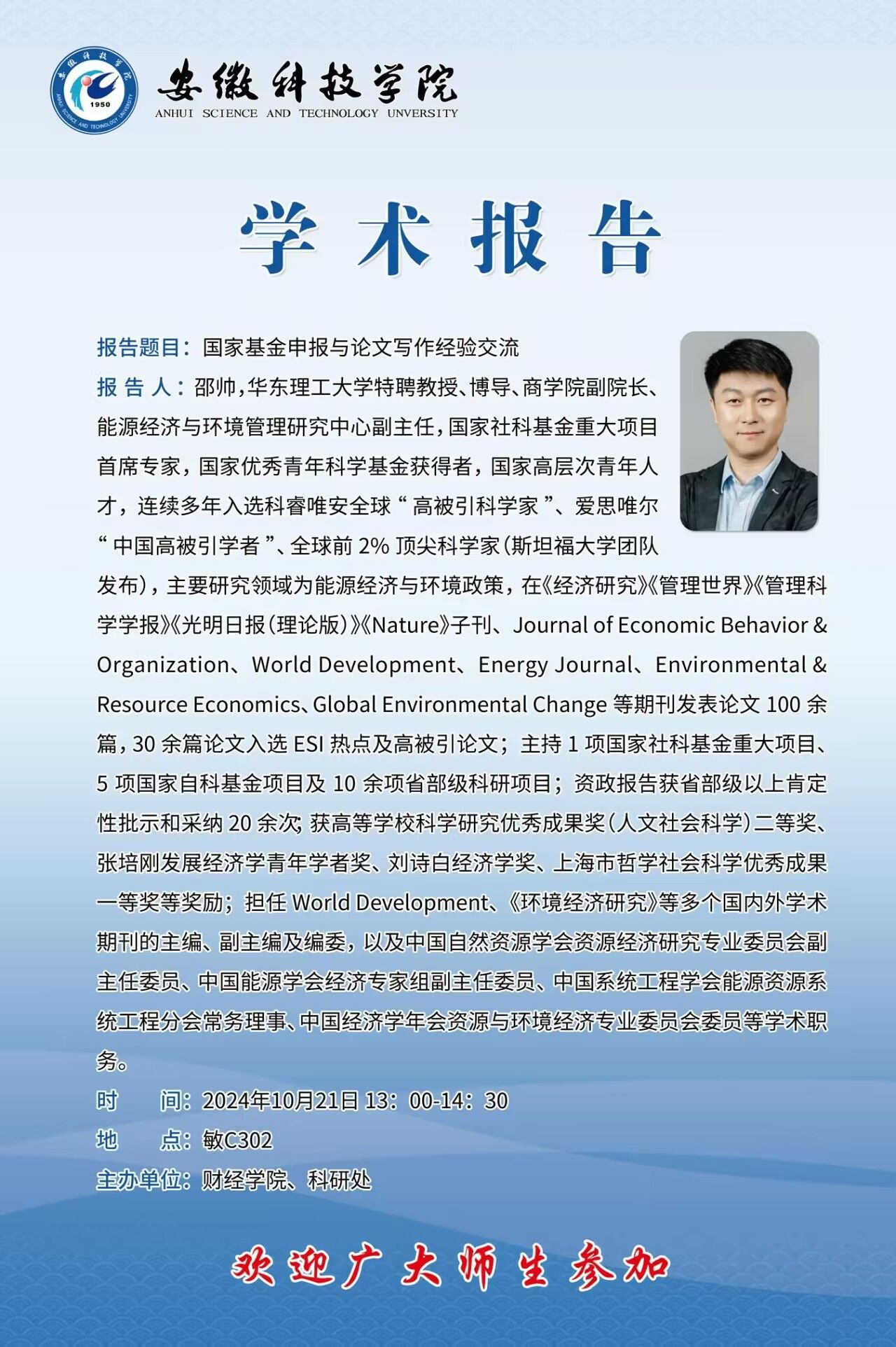 【日期:2024年10月17日】 【单位:科研处 校科协 财经学院】 【作者:钱晶晶】