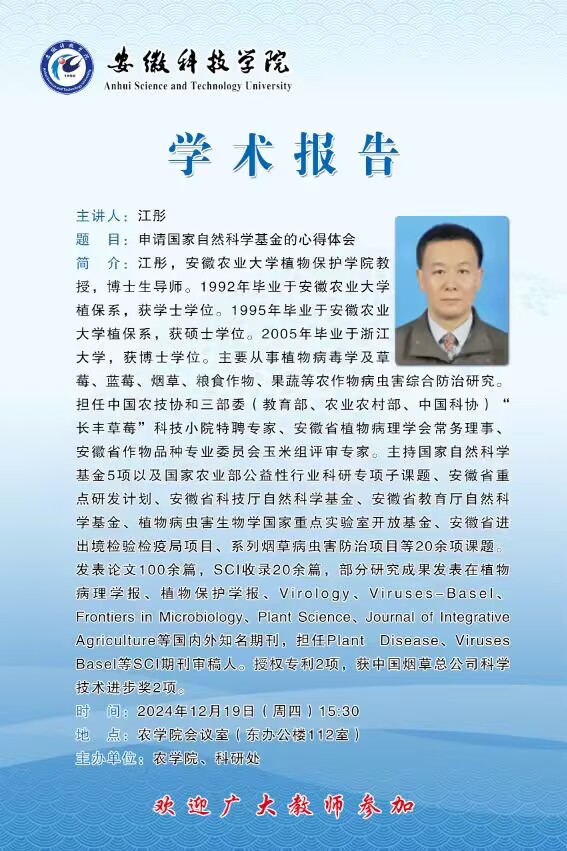 【日期:2024年12月18日】 【单位:科研处 农学院】 【作者:钱晶晶】