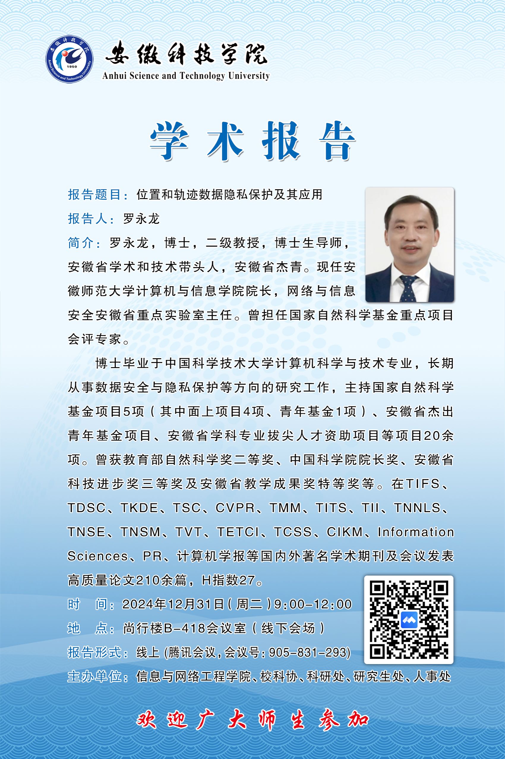 【日期:2024年12月26日】 【单位:科研处 校科协 信息与网络工程学院】 【作者:钱晶晶】