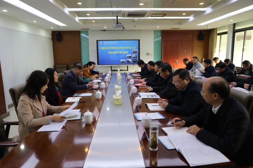 27日上午,专家组见面会在凤阳校区新图书馆十楼会议室举行。专家组全体成员,安徽省教育评估中心主要负责人,学校领导班子全体成员,相关职能部门主要负责人,外国语学院党政负责人,英语专业负责人参加会议。会议由专家组组长施建祥教授主持。