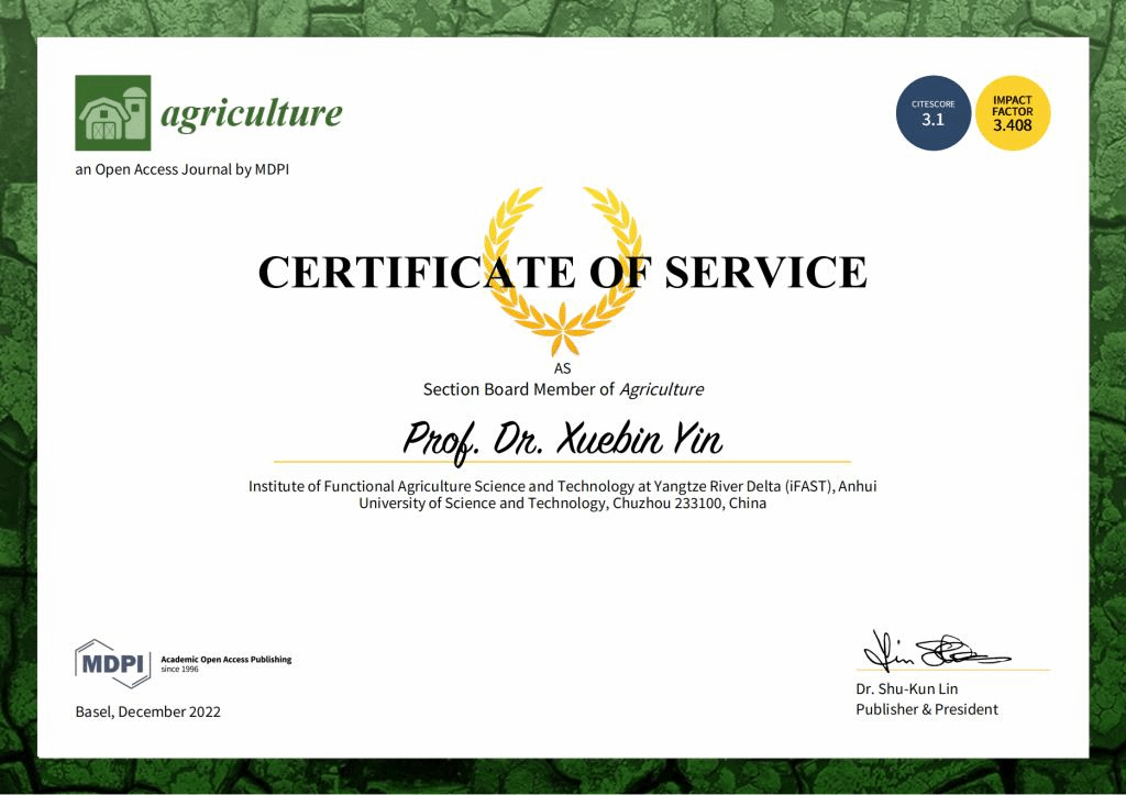 我校尹雪斌教授受聘担任国际农学知名刊物《Agriculture》编委