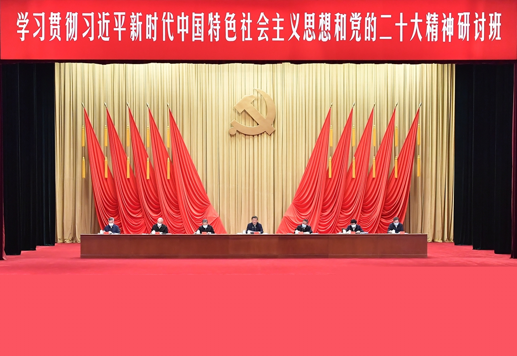2月7日,新进中央委员会的委员、候补委员和省部级主要领导干部学习贯彻习近平新时代中国特色社会主义思想和党的二十大精神研讨班在中央党校(国家行政学院)开班。中共中央总书记、国家主席、中央军委主席习近平在开班式上发表重要讲话。新华社记者 李涛 摄
