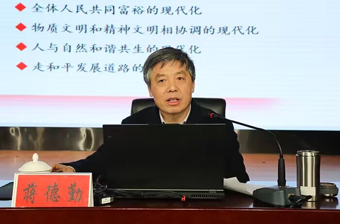 蒋德勤指出,要深入学习贯彻党的二十大精神,深刻领悟“两个确立”的决定性意义,深刻领悟中国式现代化这一重大理论创新,自觉用党的科学理论武装头脑,坚定不移听党话、跟党走,立志做有理想、敢担当、能吃苦、肯奋斗的新时代好青年;全国两会是全面贯彻落实党的二十大精神的重要会议,是体现全过程人民民主的大会,突出强调了高质量发展这一主题,广大青年要把学习贯彻党的二十大精神和全国两会精神结合起来,更加积极主动投入社会主义现代化强国建设新征程;要正确看待我国经济发展面临的困难挑战,提振发展信心,主动全面了解各级党和政府落实就业优先政策的扶持举措,树立正确的就业观,增强干事创业信心;要正确看待三年伟大抗疫斗争的历史性成就及其伟大贡献,理性对待关于疫情问题的不同声音;要强化融入国家重大战略主动意识,提升服务国家和人民的能力,青年只有与国家民族同呼吸、共命运,与社会进步同成长,才能得到自我完善和发展,实现人生追求;要辩证看待当前我国总体国家安全形势,坚持底线思维、增强忧患意识,充分理解国家安全与大学生成长成才密切相关,自觉做国家安全的坚定维护者和校园安全稳定维护者;要秉持民族大义、弘扬家国情怀,在思想上政治上行动上同党中央保持高度一致,勤学苦练、掌握过硬本领,坚决同破坏祖国统一的言行作斗争,为彻底解决台湾问题、实现祖国完全统一贡献力量;要深刻把握世界格局演变的大趋势,保持战略清醒和战略定力,坚定不移走好中国式现代化道路。