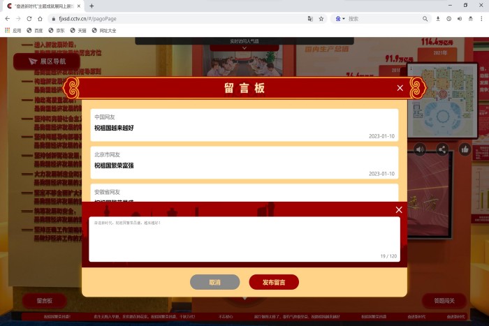 同时,财院学生也积极参与网上展馆互动留言,抒发了紧跟总书记、建功新时代、奋进新征程的真挚感言。大家感叹于新时代党和国家事业发展的新局面和新风貌,我们要更加踔厉奋发、勇毅前行,团结奋斗,努力投入学习工作、增长本领,以优异的成绩践行努力献礼祖国美好未来。(特约通讯员:朱中军 摄影:李想 审核:耿广汉 编辑:张威)