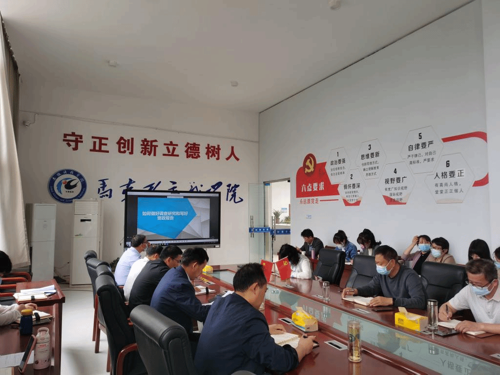 为深入推进学习贯彻习近平新时代中国特色社会主义思想主题教育,认真落实党中央关于在全党大兴调查研究的重要指示。5月24日下午,马克思主义学院邀请安徽省委讲师团专家秦国伟博士作题为“如何做好调查研究和写好咨政报告”主题教育辅导报告,全院教师参加。报告会由学院党总支副书记、院长张德化主持。