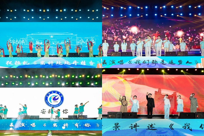 本次文艺晚会紧扣“共赴未来”这一主题,创新节目设计,围绕学习党的二十大精神、党史学习教育、革命传统教育、优秀传统文化教育、安科精神教育和我校近年来的发展成就进行编排,着力把晚会打造成一堂青春思政课和入学教育课,实现了思想政治教育与精彩节目的有机融合,把思想引领落到实处、植入心田,让学生在润物细无声中坚定理想信念,表现出一代又一代的安科人接过时代的接力棒,秉承“明德、致知、笃行、创新”的校训精神和“艰苦奋斗、开拓创新、求真务实、无私奉献”的安科精神,以勇立潮头的奋斗姿态和一往无前的安科豪气,勇担时代重担,脚踏实地,苦干实干,努力实现学校跨越式发展,在新时代新征程中留下许党报国的奋斗足迹,将安科人的热血和才华奉献给祖国,奉献给朝气蓬勃的新时代。