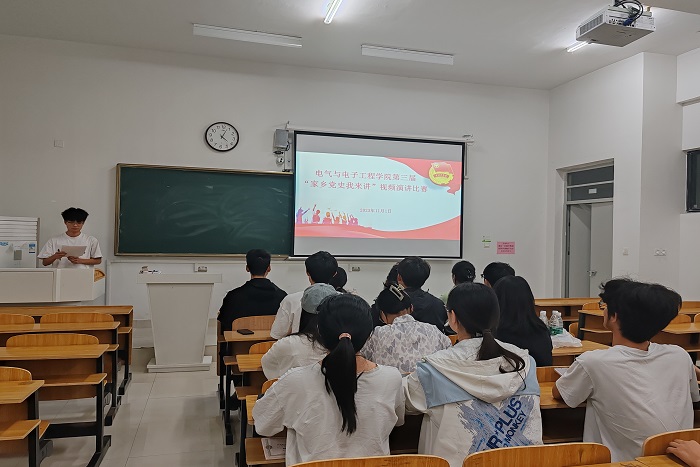 为了解和传承家乡党史,深入学习宣传贯彻党的二十大精神,11月9日下午,电气与电子工程学院在致知楼B106开展了第三届“家乡党史我来讲”视频演讲比赛活动。学院有关教师和学生会负责人担任评委,2022、2023级学生代表参加活动。