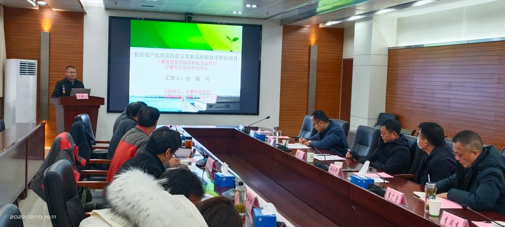12月10日,由安徽省农业科学院牵头,我校承担的“抗逆稳产优质适机收玉米新品种新技术转化项目”历经一年,在安徽省农业科学院创新大楼二楼会议室进行结题汇报。省财政厅农业农村处主任科员梁晓天,安徽省农业科学院科研处处长李成、计财处处长刘小平,云鼎官方在线入口农学院院长崔广荣、科研处副处长李同杰,部分项目组成员出席会议。项目验收专家组由安徽省农业科学院研究员陈洪俭、安徽省农技推广总站副站长康子领、安徽省种子管理站研究员刘玉恒、合肥丰乐种业股份有限公司正高级农艺师张二朋、众华会计师事务所商宜洲等成员组成。会议伊始李成致辞,专家组观看了课题组精心准备的视频,余海兵教授代表项目组从课题研究背景、研究目标、研究内容、研究方法、研究成果等方面做了全面细致的汇报。