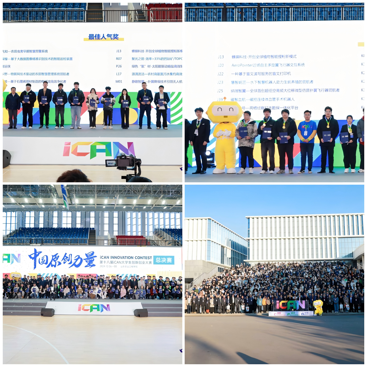 12月8日,第十八届iCAN大学生创新创业大赛全国总决赛在山东农业工程学院(淄博校区)成功落下帷幕。我校信息与网络工程学院学子斩获佳绩,荣获全国二等奖、最佳人气奖。