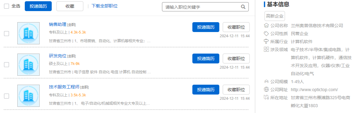 兰州奥普信息技术有限公司招聘信息