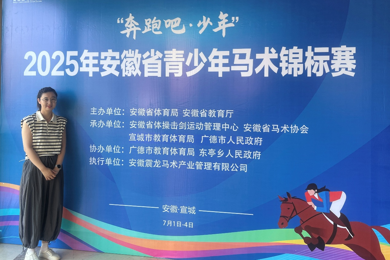 7月1日,安徽省体育局、安徽省教育厅联合主办的2025年安徽省青少年马术锦标赛在安徽省广德市长三角国际马术赛事中心正式开赛。我校动物科学学院教师丁金雪博士受邀担任兽医代表,负责马匹赛前健康检查与赛中应急保障,为赛事顺利进行保驾护航。