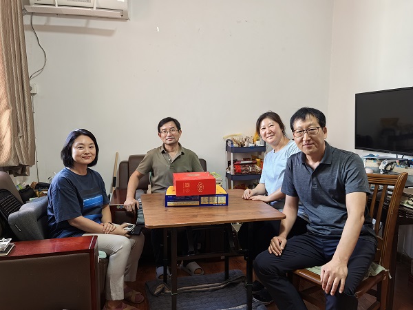 国际交流与合作处处长陈德用首先代表学校,向外籍教师们致以节日祝福,亲手将节日的礼物递到了每位外籍教师的手中,希望这份礼物能给他们带来节日的喜悦和温暖。陈德用仔细询问了外籍教师教育教学工作和日常生活细节,并与外教初步探讨韩语教育教学改革问题。外籍教师们深受感动,纷纷表达了对学校的感激之情,也表达了对滁州校区韩语教学工作的高度关注。他们表示将一如既往地支持学校的工作,为学校的发展贡献自己的智慧和力量。
