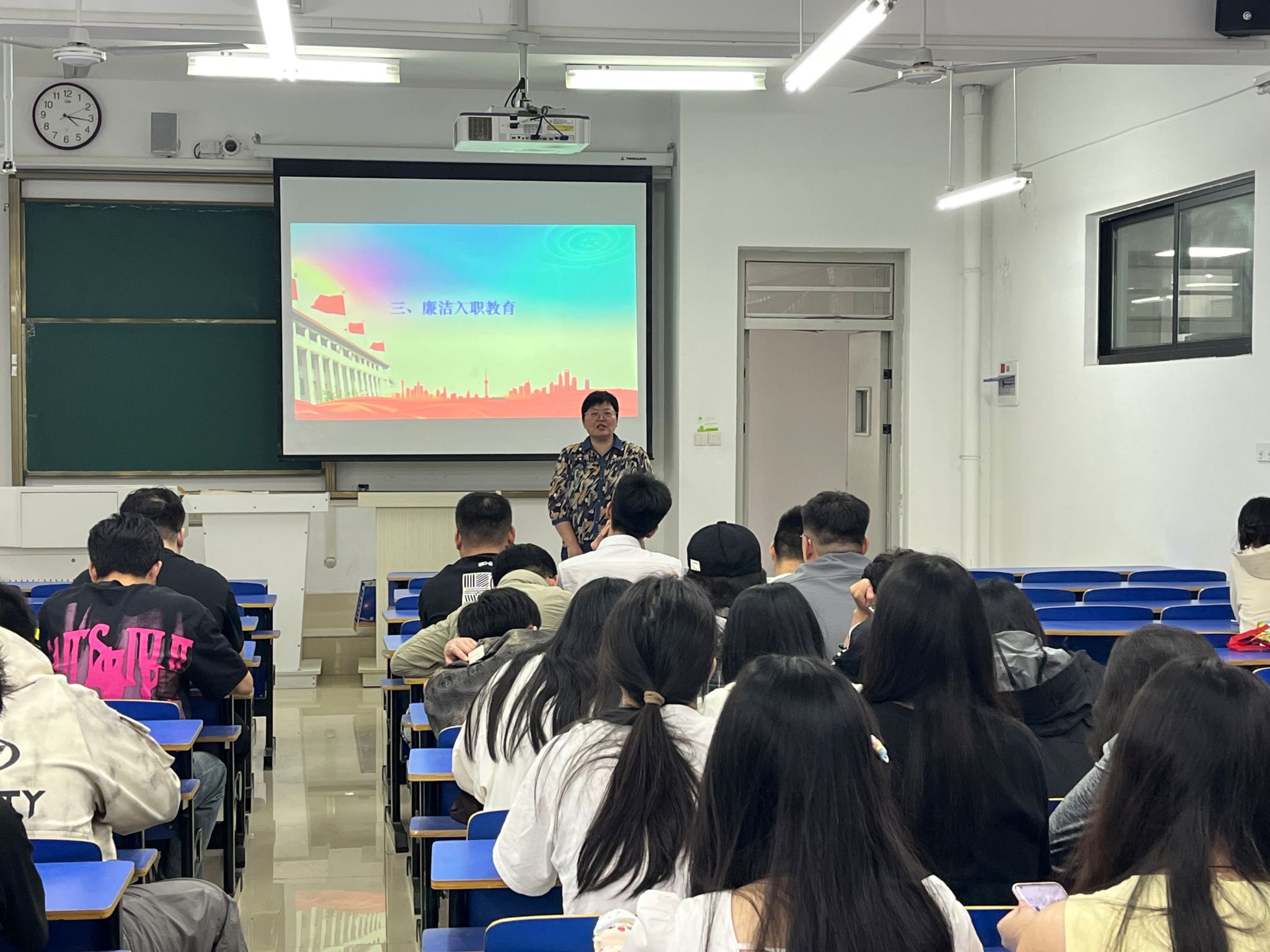学院党委副书记谢宜勤指出,廉洁入职教育是毕业教育重要内容之一,是初入职场需要扣好的“第一粒扣子”。她寄语毕业生要牢固树立纪律规矩意识,坚守廉洁从业底线,保持对职业生涯的敬畏之心;锲而不舍落实中央八项规定精神,让学习教育成果真正落到实处;弘扬和践行社会主义核心价值观,内化于心、外化于行;明晰“打铁还需自身硬”,不断强化本领担当,坚持实干为本,以清正廉洁的作风展现新时代青年学子的风采。(特约通讯员:武辉 审核:傅友福 谢宜勤 编辑:李锦)
