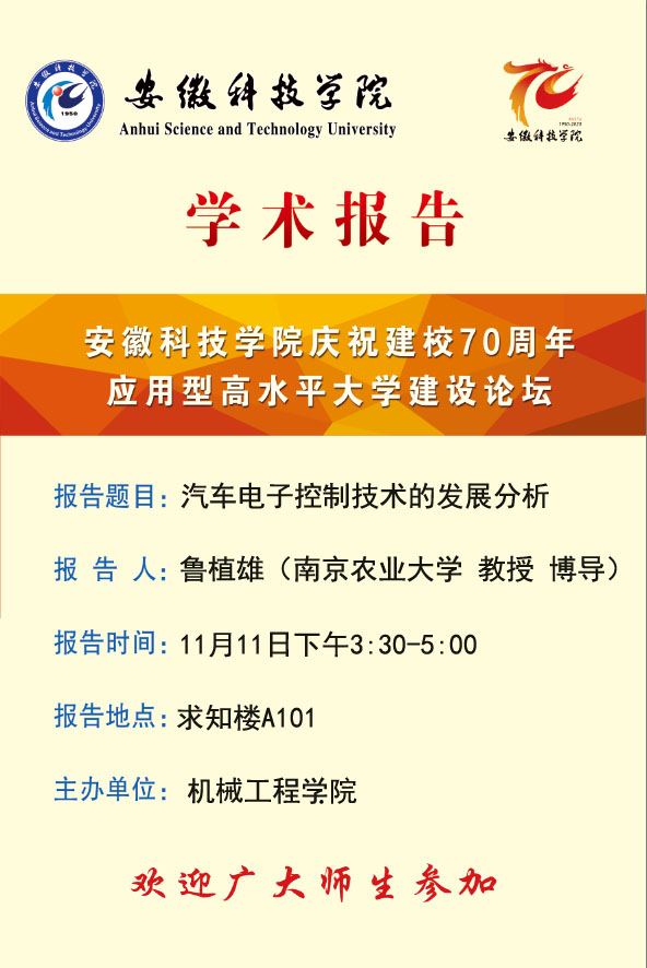 庆祝建校70周年学术报告--汽车电子控制技术的发展分析