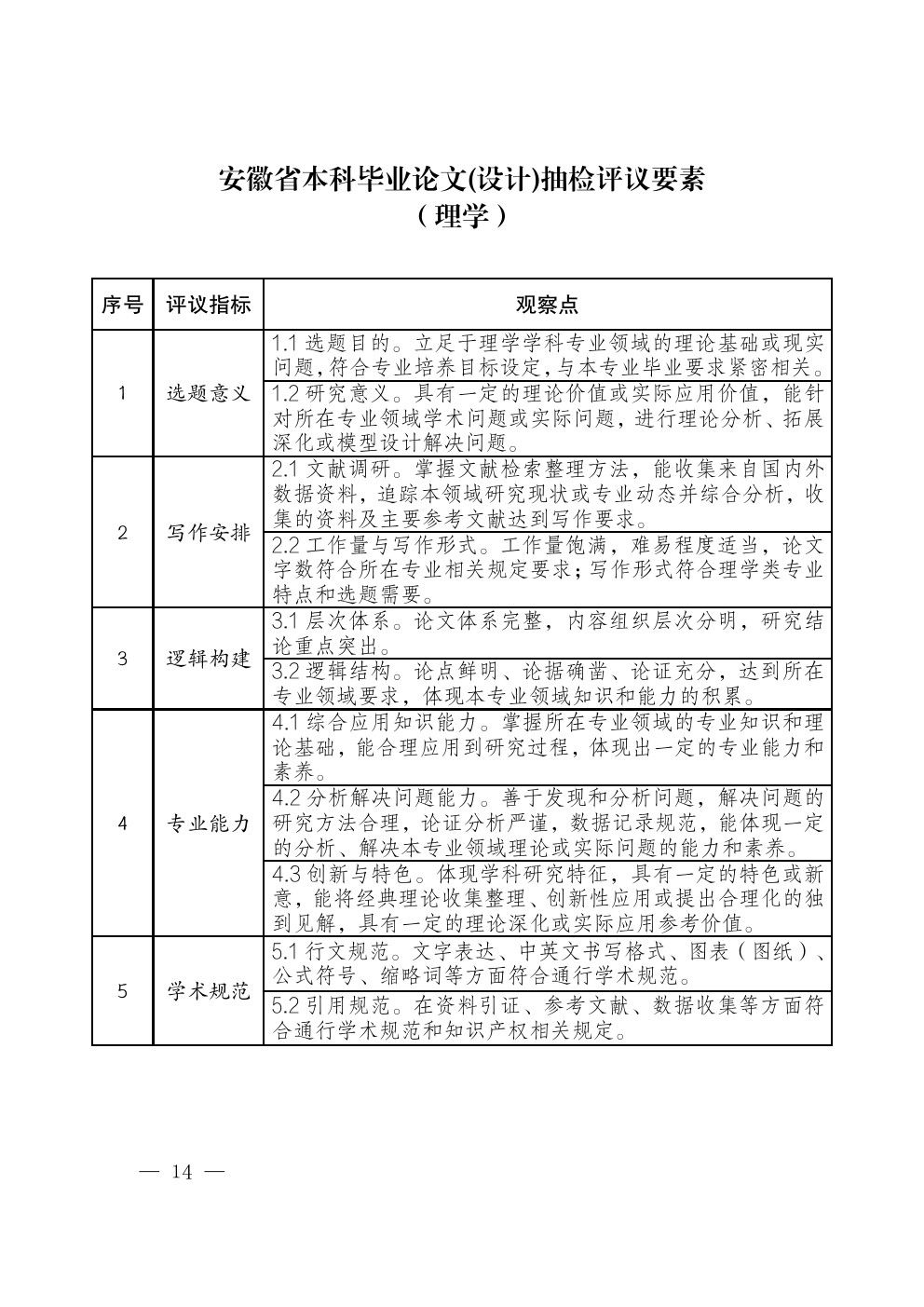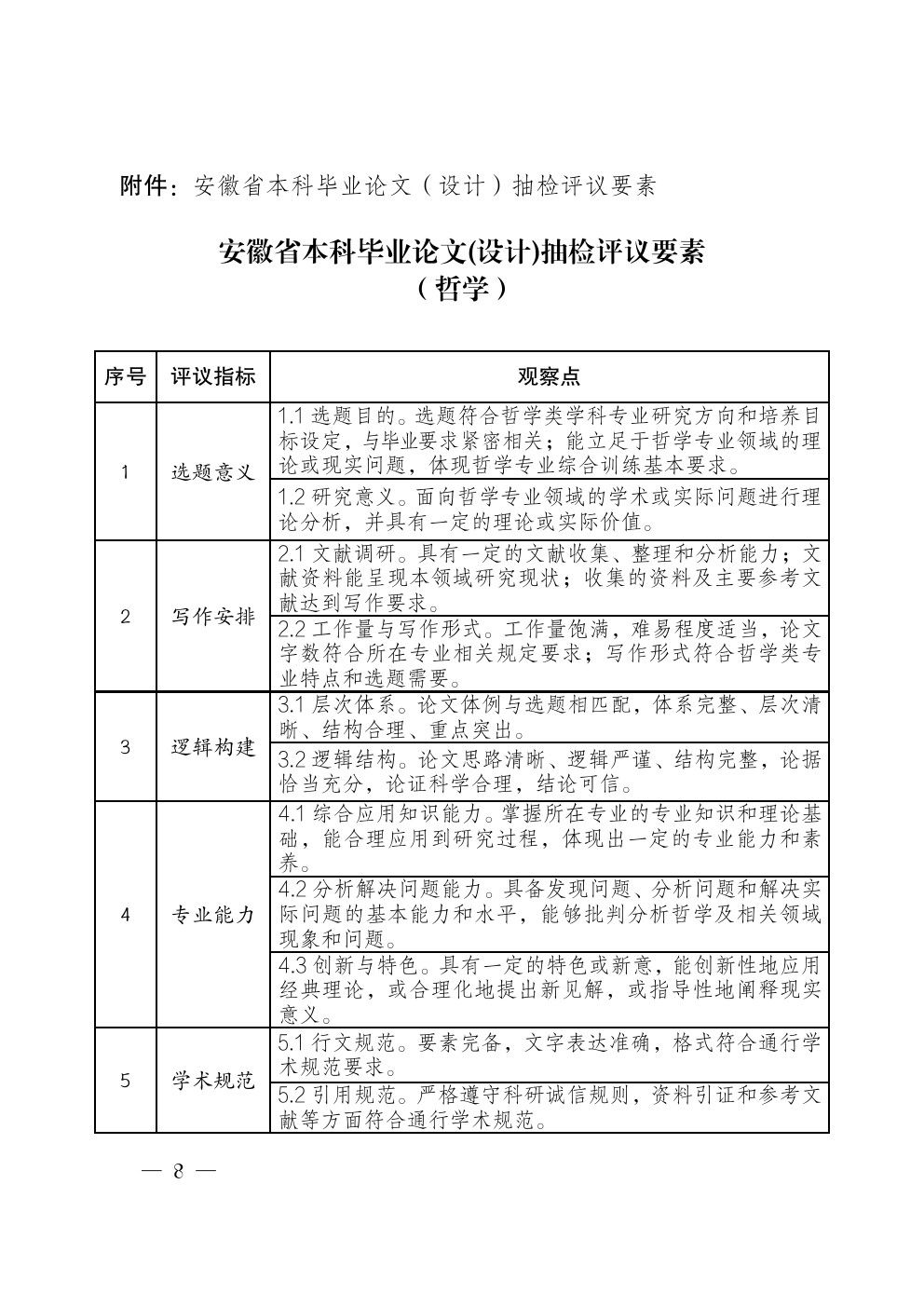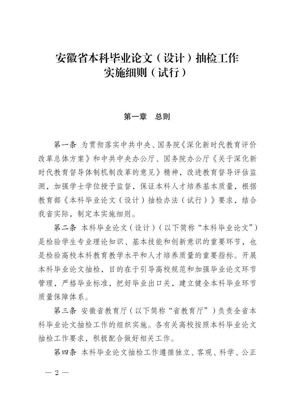 安徽省本科毕业论文(设计)抽检工作实施细则(试行)
