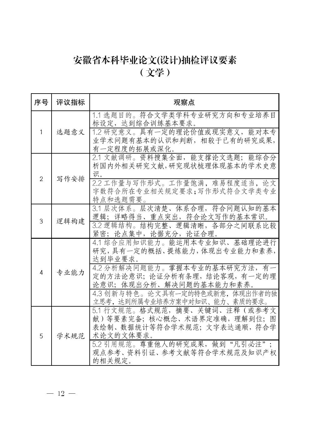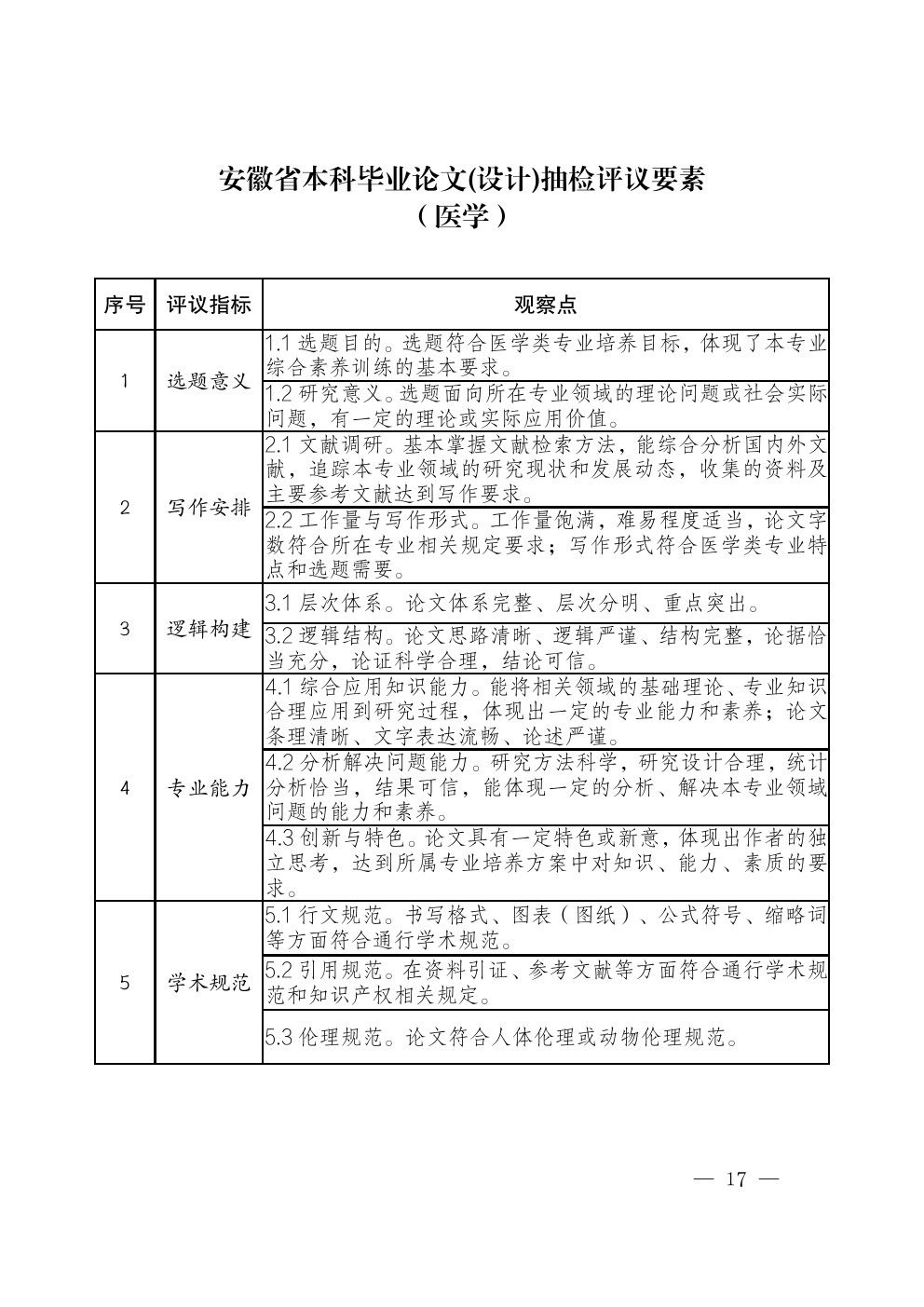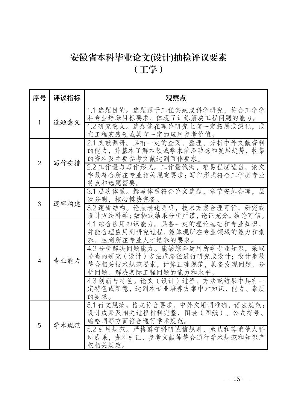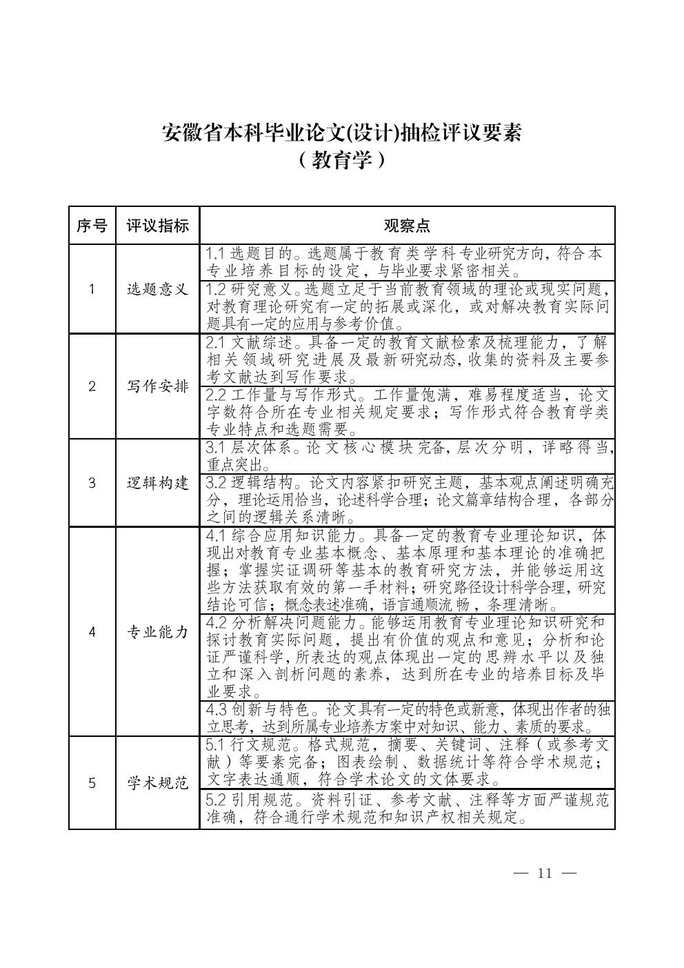 安徽省本科毕业论文(设计)抽检工作实施细则(试行)