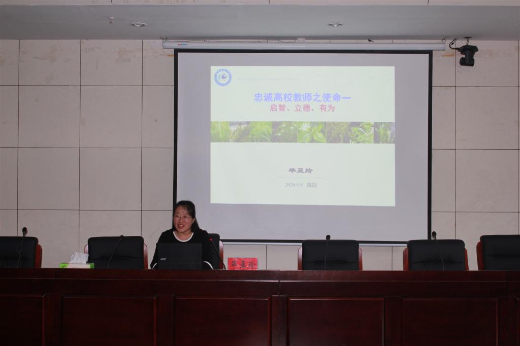 为进一步加强教师师德师风建设,弘扬立德树人奋进担当精神,根据学校教师节庆祝活动工作安排,2020年9月8日-9日,在会议中心第一报告厅,农学院毕亚玲博士、人文学院姚大怀博士分别作了题为《忠诚高校教师之使命——启智、立德、有为》、《师者的“三从四德”》的师德教育专题报告。近五年入职新教师参加了报告会。报告会由党委教师工作部副部长詹学文主持。毕亚玲围绕“启智、立德、有为”三个方面,结合自己从教经验及生活经...