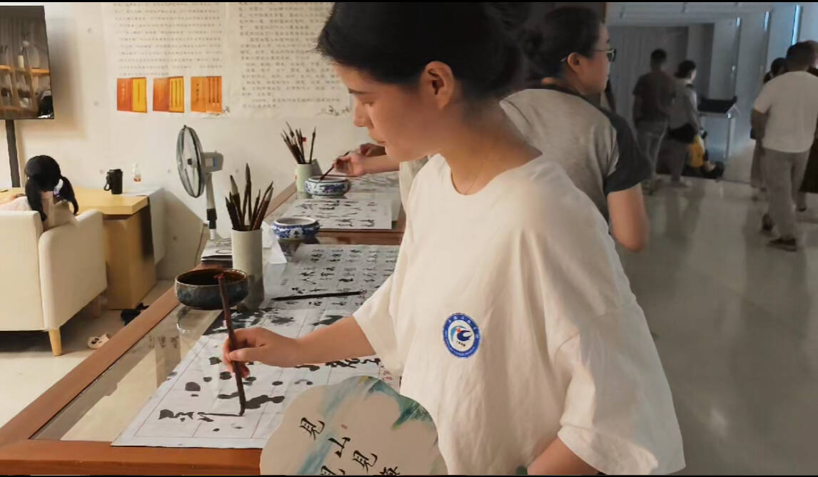 在书法体验区,同学们展纸蘸墨,于一笔一划间体悟“纸以载道、墨以传情”的文化精髓。宣纸独特的柔韧性和吸墨性,为书法创作赋予了更多可能——毛笔行走其间,流淌的不仅是墨迹,更是文化的脉动。青年们通过临摹与创作,不仅探索艺术,更承接文脉,将对中华优秀传统文化的认同与热忱深深写入心中。