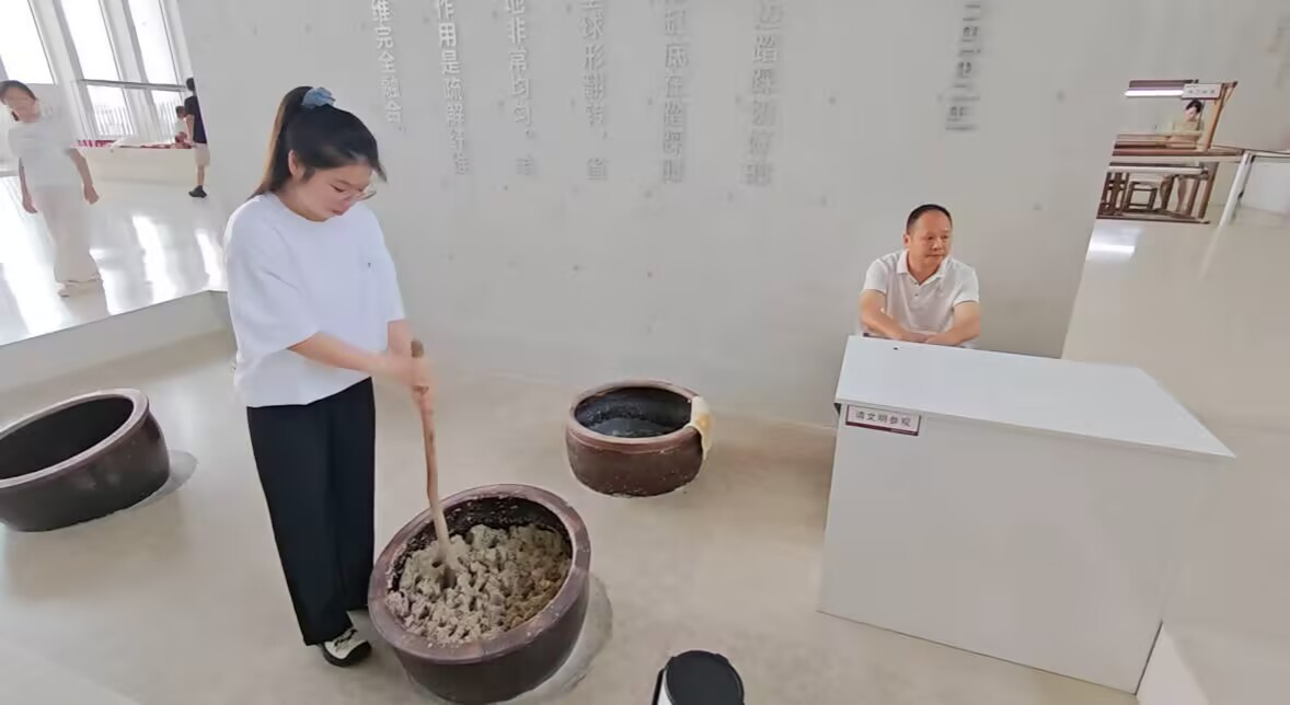 比观看更深刻的,是亲手实践。在宣纸工坊,同学们积极参与制作全过程:从原料搅拌、纸浆捞取、脱水压平,到纸张烘晾,每一个环节都亲身体验。质朴的劳动让大家深刻感受到匠人之艰辛,也体会到非遗技艺所蕴含的沉稳而深厚的文化力量。团队成员感慨道:“纸上得来终觉浅,绝知此事要躬行。对细节的极致追求让我真正理解了传统技艺的魅力,也更明白了传承的意义。”