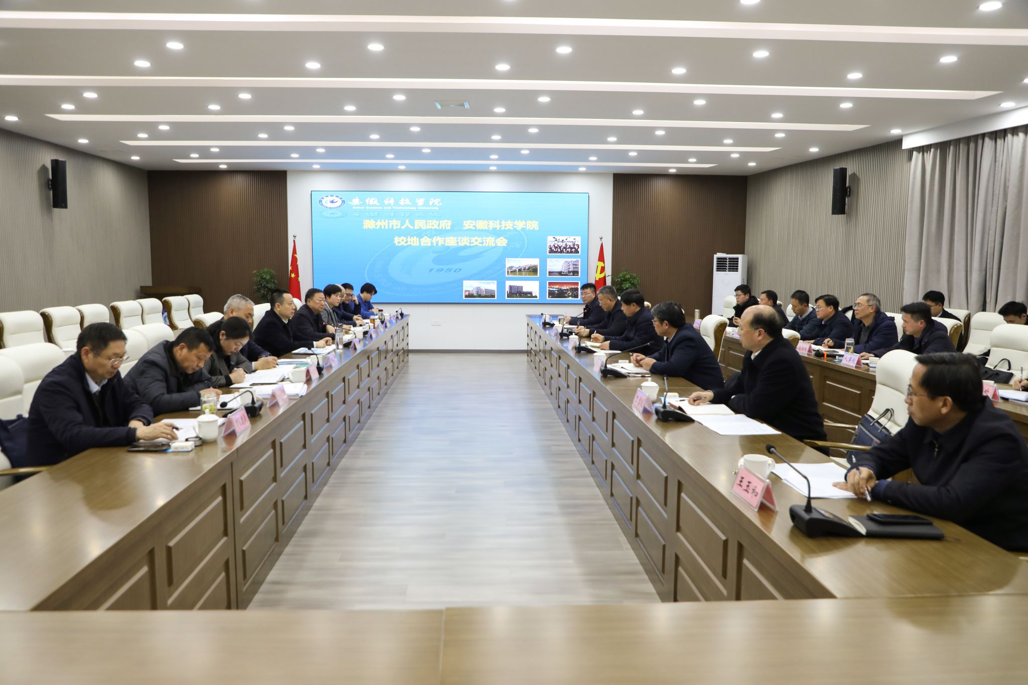 3月3日下午,我校与滁州市人民政府举行校地合作座谈交流会。滁州市委副书记、市长胡春华,市人大常委会副主任苏虹及市直有关部门、南谯区政府负责人,云鼎官方在线入口党委书记时伟,党委副书记、院长李升和,党委副书记曹付忠,党委委员、副院长王孝义、赵伟峰、王玉和及相关部门负责同志参加座谈交流会。会议由时伟主持。