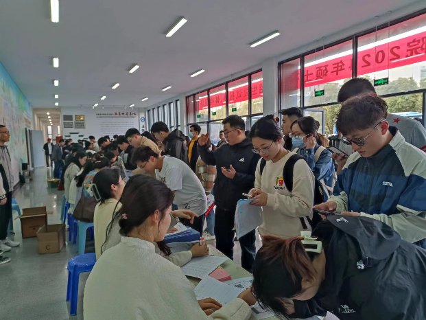 工作现场,学院还专门设置了党员先锋岗,一批2022级、2023级研究生党员志愿者投入到复试工作中,为考生答疑解惑。