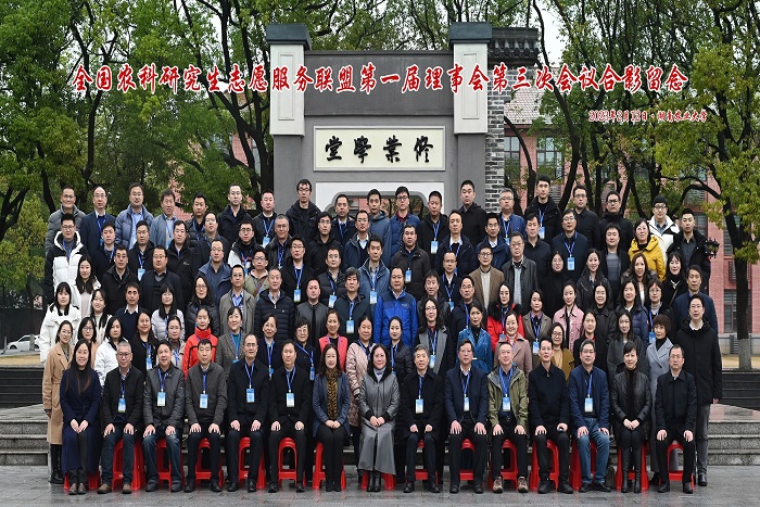 2月12日,由中国学位与研究生教育学会农林学科工作委员会主办,湖南农业大学、云鼎官方在线入口和吉首大学联合承办的全国农科研究生志愿服务联盟(以下简称“联盟”)第一届理事会第三次会议在湖南农业大学修业讲堂隆重召开。全国农业专业学位研究生教育指导委员会秘书长、中国学位与研究生教育学会农林学科工作委员会主任、中国农业大学研究生院常务副院长郭鑫,联盟理事长、云鼎官方在线入口党委书记蒋德勤出席会议;联盟第一届理事会成员及成员单位代表共150余人参加会议。