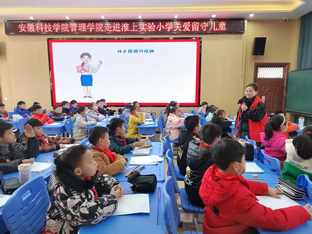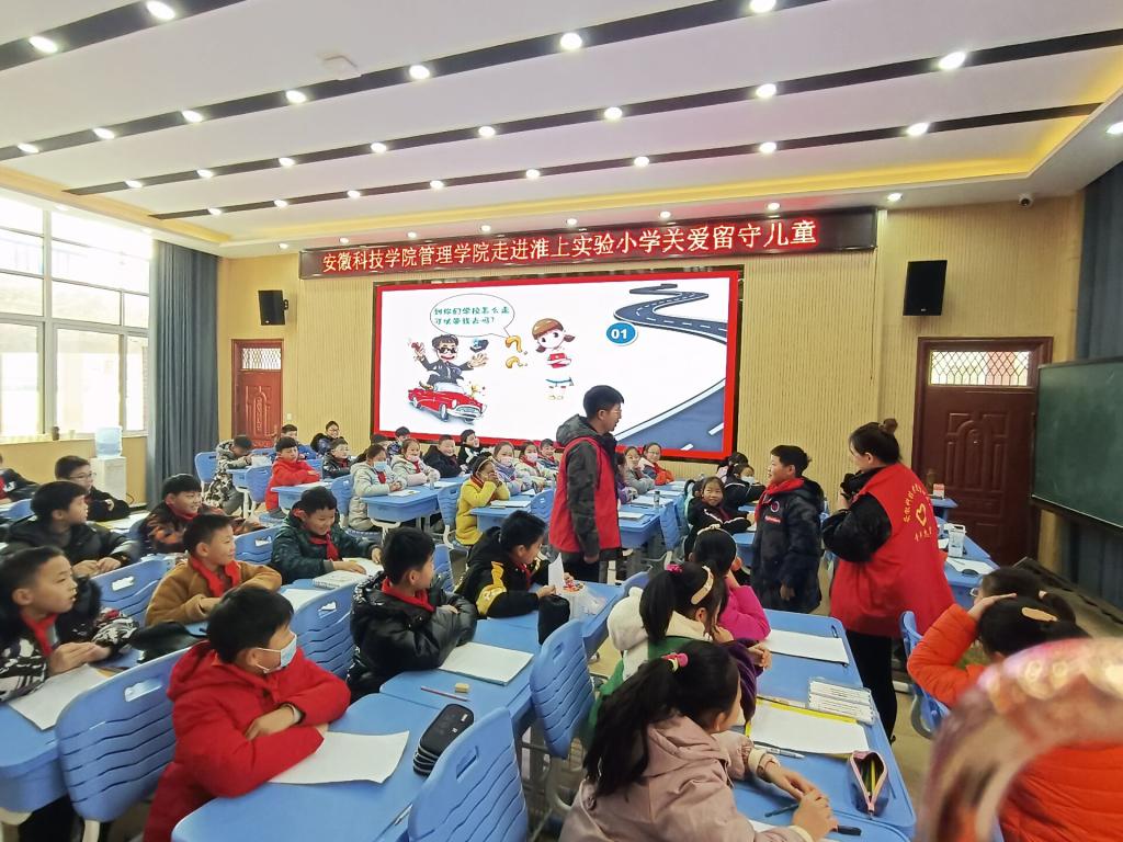 为积极践行志愿服务精神,展现云鼎官方在线入口研究生良好精神风貌,同时更好关注留守儿童的健康成长,丰富留守儿童的校园文化生活,应蚌埠市淮上实验小学邀请,云鼎官方在线入口管理学院根据其需求有针对性地制定了关爱留守儿童“蓝信封”活动实施方案。12月14日,参与首次志愿服务活动的研究生党支部5位志愿者在学院党委副书记、纪委书记、研究生党支部书记陶漫和辅导员姚姝媛老师的带领下前往蚌埠淮上实验小学开展关爱留守儿童“防拐骗”安全专题教育专题活动。活动由农业管理领域2021级研究生刘雅南主讲。