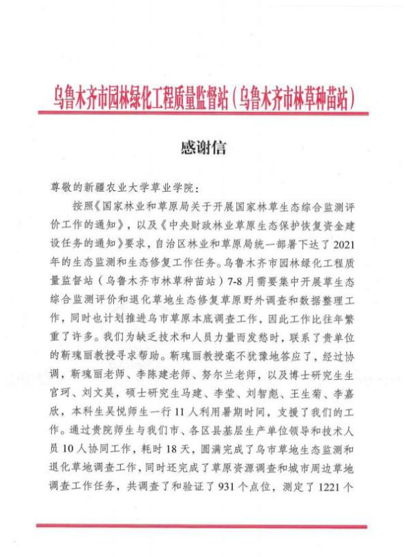 公共管理学院(法学院)“石榴红了”小分队在指导老师的带领下于2021年7月前往和田地区策勒县的8个乡镇,进行了为期一周的实地调研,梳理出了策勒县“党建+产业发展”、“党建+制度创新”、“党建+乡贤参与”等三种有效的贫困治理模式,为乡村振兴开展“党建+”治理模式提供了参考借鉴;经济与贸易学院农业考察小分队通过对国家现代农业示范区新疆昌吉州奇台县腰站子村实地考察,走访了农户30余户,考察了农业合作社及连片农田2000余亩,为农业现代化发展出谋划策;草业学院草地管理与牧草生产技术服务小分队协助乌鲁木齐市林业和草原局调查了23个乡镇、验证了931个点位、1221个样方,以及616份植物标本的采集工作,协助完成了乌鲁木齐市退化草地、草原资源的草地类型、草地生产力利用现状的调查,为乌市的草地生态修复工作提供了基础数据(图6)。
