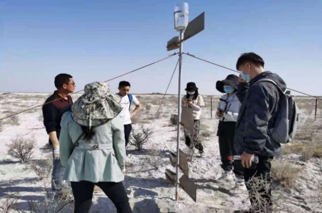 动科学院动物保健与畜产品质量安全研究小分队在玛纳斯县多次展开牲畜养殖宣讲,推广畜牧养殖专业技术服务,及时解决村民在畜禽养殖及饲料加工过程中遇到的问题;农学院小胡杨科技志愿服务小分队利用自己所学的专业知识,为村民开展农业科技服务,积极推广棉花高质高效栽培技术(图2);早熟复播玉米新品种的示范、农作物病虫害绿色防控等技术;林园学院生态林防护小分队则选择了位于喀什地区沙漠边缘的城郊防风固沙林基地,跟林管站相关工作人员一起研究了不同长势以及疏透度的毛白杨防护林林带后风速空间变化特征、林带背风面集沙特征、土壤风蚀特征,揭示了沙地白杨防护林防风规律并跟工作人员探讨了最佳防护效能所对应的林分特征(图3)。