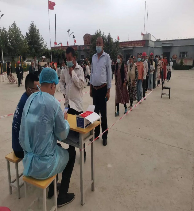 开展专业技术服务的同时,“六个核桃”志愿团队也积极参与到当地疫情防控工作中,就地转化为志愿者、网格员、宣传员,冲锋在前,协助访惠聚工作队组织村民开展核酸检测工作,完成一千余名村民的身份信息登记、核酸检测凭证分发、维持核酸检测现场秩序,准备核酸检测场地等工作。在受到村委会及驻村工作队的表扬与赞赏外,大家也深刻体会了防疫工作者的艰辛,向防疫工作者致敬。